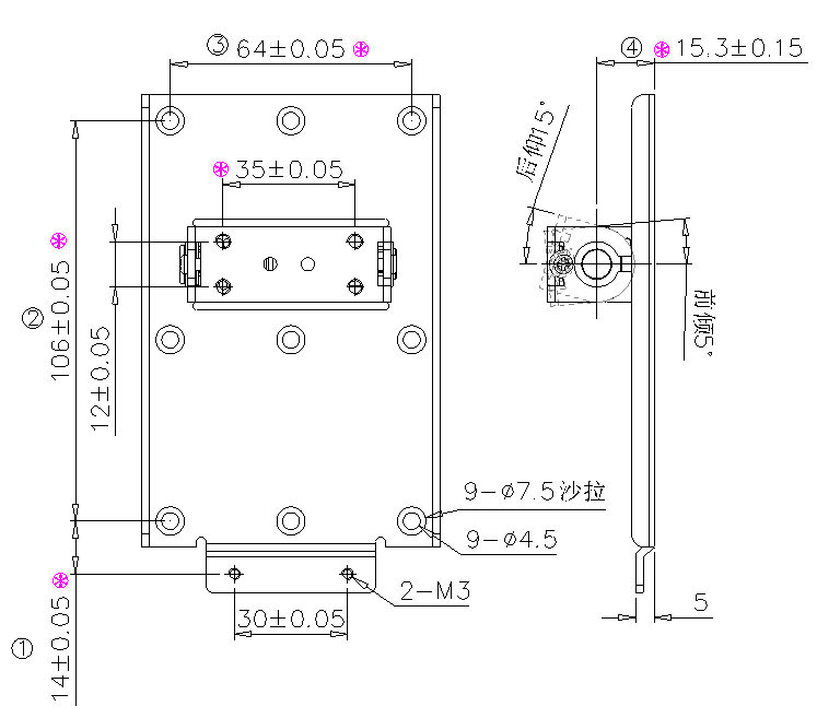 4.轉軸旋轉角度:前傾5°后仰15°。